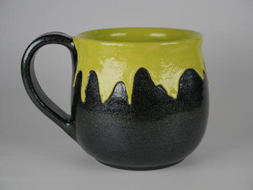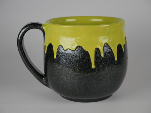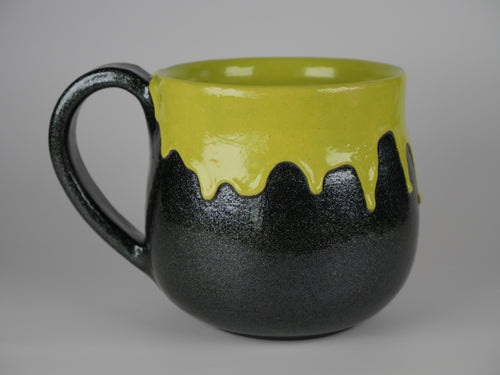 The Cosmic Purple Mug features tones of purple, blue, black, and red with swirls of color throughout. Each mug is unique; the prominent color and the galaxy-like swirls will vary from mug to mug.